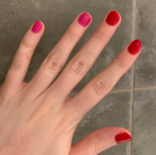 I had a hard time deciding whether or not I should matching the velvet fabric color and do a blue ribbon or if I should match my two-tone nail colors for the date night. I couldn't make a decision while at the store so I bought 2.5 yards of each color and told myself I would decide later.